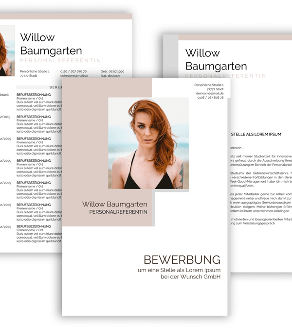Diese Bewerbungsvorlage ist einfach zu bearbeiten und in wenigen Schritten bereit, von dir versendet zu werden. Einfach direkt nach der Bezahlung herunterladen, entpacken und, wenn du willst, die von uns vorgeschlagene Schriftart installieren (Anleitung senden wir dir mit). Mit dem Kauf erhältst du Vorlagen für: